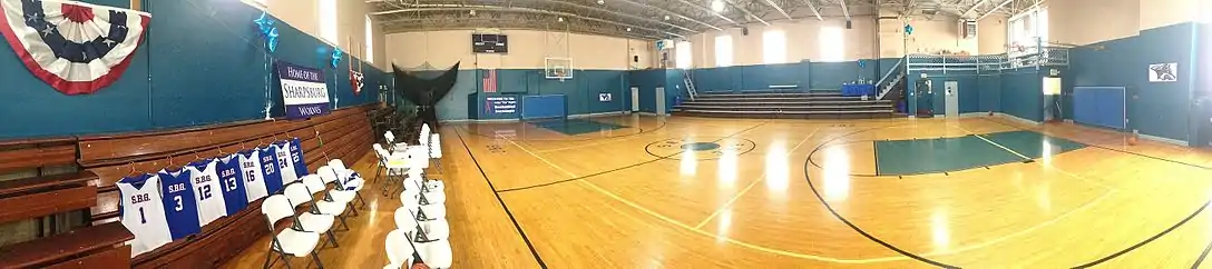 The Linden Gymnasium/Sharpsburg Recreation Center originally served as the gymnasium for the local Young Mens Christian Association (YMCA), constructed in the late 1880s through the early 1890s. The Sharpsburg School District later purchased the gym and repurposed it for use by the Sharpsburg High School until the Sharpsburg School District merged with the Fox Chapel Area School District in 1970. The Fox Chapel Area School District sold the building to the borough in 1982 and it is operated by the Sharpsburg Recreation Committee, who have a lease with the borough to operate and manage the building. The Linden Gym is home to the Sharpsburg Wolves and Junior Wolves, local club teams, and also host to the annual John "Tip" Veltri Basketball Tournament.