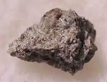 The Shergotty meteorite (Named after Sherghati) is the first example of the shergottite Martian meteorite family. It was a 5-kilogram (11 lb) meteorite which fell to Earth at Sherghati, in the Gaya district, Bihar, India on 25 August 1865, and was retrieved by witnesses almost immediately.[1] Radiometric dating indicates that it solidified from a volcanic magma about 4.1 billion years ago.[2] It is composed mostly of pyroxene and is thought to have undergone preterrestrial aqueous alteration for several centuries. Certain features within its interior are suggestive of being remnants of biofilm and their associated microbial communities.[3]