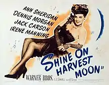 Shine On, Harvest Moon[2] is a 1944 musical–biographical film about the vaudeville team of Nora Bayes and Jack Norworth, who wrote the popular song "Shine On, Harvest Moon." The film was directed by David Butler and stars Ann Sheridan and Dennis Morgan[2] Sheridan's singing voice was dubbed by Lynn Martin.