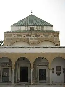 Subsequently, the zaouia was enlarged twice: first in the 17th century with the addition of a courtyard surrounded by rooms and then in the 18th century with the addition of the prayer room under the reign of Al-Husayn I ibn Ali.[1]