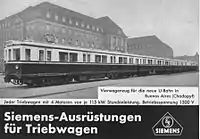 During the 1950s, as part of Juan Perón's five year plans, more of the Siemens cars were built in Argentina by the company Baseler. Just 13 of these cars were completed from 1955-1960 before the plan was scrapped following the Revolución Libertadora, while another 3 cars still in production remained partly finished and were ready to be scrapped in 2013.[9]