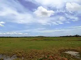Somawathiya National Park lies in the deltaic flood plains of the Mahaweli River and contains the junction where it is forked into two branches.[4] The two branches are the Mahaweli River, which flows north into Koddiyar bay and the lesser Verugal Oya which flows north-east into the sea. The central riparian flood plain is featured by many old river channels and contain dispersed 'villus', the waterfilled basins around among the grassy plains. There are 20 such villus is located in the park.[3] Somawathiya and Flood plains national parks are important protected areas for the wetland system of Mahaweli River flood plains.[5] The high quality habitat of fertile alluvial underlying layer supports a plentiful wildlife.[4]