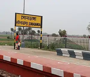 Sonadanga railway station is a railway station under Sealdah railway division of Eastern Railway system. It is situated in besides National Highway 34 at Sonadanga village on the Lalgola and Gede branch lines in Nadia district in the Indian state of West Bengal. The distance between Sealdah and Sonadanga is 134 km.[1] Few EMU and Lalgola passengers trains are passing through Sonadanga railway station.[2] It serves Nakashipara and the surrounding areas.