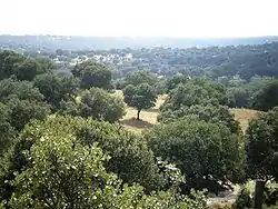 Soto de Viñuelas is a meadow-oak forest north of the city of Madrid, south of Tres Cantos and San Agustín del Guadalix, east of the Monte de El Pardo and west of San Sebastián de los Reyes, all municipalities are parts of the Community of Madrid, Spain.[1][2] Much of it is a fenced property of 3,000 hectares, which includes important ecological values, landscape and art. It belongs to the municipality of Madrid, although it contains small areas to the north, corresponding to Tres Cantos, including a development of the same name (i.e., Soto de Viñuelas). Other developments nearby are Ciudalcampo and Fuente del Fresno, situated on its western boundary. King's College, the British School of Madrid, is also located in the development of Soto de Viñuelas, abutting the Regional Park. In 1985 Soto de Viñuelas was turned into the Regional Park of the Cuenca Alta del Manzanares, the largest protected natural area in the region. It has been classified as Area B, a legal instrument that allows agricultural land use. Soto de Viñuelas also received the status of Special Protection Area for Birds. It is accessed from the M-607 Freeway (Colmenar Viejo Freeway), exit 20. Soto de Viñuelas and Tres Cantos are both listed on the exit sign.