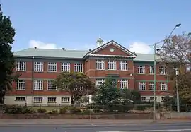 Toowoomba South State School opened in 1865. It was divided into Toowoomba South Girls and Infants School and Toowoomba South Boys School in 1869. On 1 April 1878 the Girls and Infants School split into Toowoomba Middle Girls State School and Toowoomba Middle Infants State School, but on 1 March 1880 they were merged to create Toowoomba Middle Girls and Infants State School. On 22 January 1883 the school was split again into Toowoomba South Girls State School and Toowoomba South Infants State School, being merged back on 1 October 1900 into Toowoomba South Girls and Infants School. In 1983 the Girls and Infants School and the Boys School were merged to re-establish Toowoomba South State School.[6] The school closed on 31 December 2013.[9] Over the many years and the splits/mergers, the physical footprint of the school (as a whole) has changed. At its commencement, the school was on the north-east corner of Ruthven Street and Lawrence Street (27°34′13″S 151°57′08″E / 27.5702°S 151.9523°E), later expanding through James Street. At its closure, the school was at 158 James Street (27°34′11″S 151°57′09″E / 27.5697°S 151.9526°E). During much of its history, the school also occupied 152 James Street (corner of Neil Street, 27°34′10″S 151°57′17″E / 27.5694°S 151.9546°E).[10] This series of maps shows some of the changes.[11][12][13][14][15] The school's website was archived.[16]