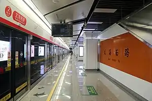 South Wenhai Road (Chinese: 文海南路) is a station on Line 1 and Line 8 of the Hangzhou Metro in China.[1] It was opened on 24 November 2015, together with the expanded section of Line 1.[2] The Line 8 was opened on 28 June 2021.[3] It is located in the Qiantang District of Hangzhou.