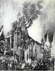 In 1843 parts of the monastery and the church were burnt down. During the restoration of the priory building, the church was demolished except for a few fragments that stayed as ruins.