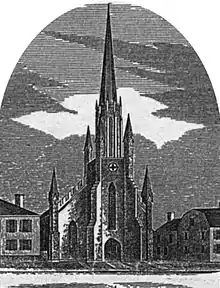 The parish of St. John's Episcopal Church, Hartford, Connecticut, was formed in 1841. Its first building, designed by Henry Austin (architect),[1] was constructed on Main Street just south of the Wadsworth Atheneum in 1842. The parish left Hartford in 1907 and is now St. John's Episcopal Church (West Hartford, Connecticut).