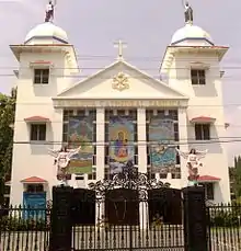 The St. Mary's Syro-Malabar Cathedral Basilica is a cathedral in Ernakulam, Kerala, India.[1][2] It was founded in 1112, and is also known by the names Nasrani Palli, Anchikaimal Palli or Thekke Palli.[3] The church is the headquarters of the Major Archeparchy of Ernakulam-Angamaly, which is the Primatal See of the Syro-Malabar Church. Currently it’s closed down and under police protection due to dispute between the rebels in the Ernakulam-Angamaly diocese and the Syro-Malabar Hierarchy.