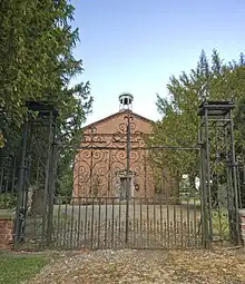 St John's is a rectangular church in Georgian style.[3] It is constructed in brick, and has a slate roof. At the west end is an open octagonal cupola.[2] There are pedimented doorways at the west end, and in the middle of the south side.[3]