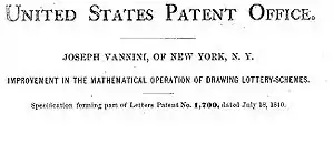 Private lotteries were legal in the US in the early 19th century.[28] In fact, a number of US patents were granted on new types of lotteries. In today's vernacular, these would be considered business method patents.