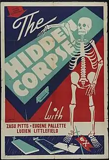Strangers of the Evening (reissued as The Hidden Corpse[3]) is a 1932 American pre-Code mystery film produced by Samuel Bischoff for Tiffany Pictures, directed by H. Bruce Humberstone, and starring ZaSu Pitts, Lucien Littlefield and Eugene Pallette.[4] Based on Tiffany Thayer's novel The Illustrious Corpse,[5] the screenplay was adapted by Stuart Anthony and Warren Duff.