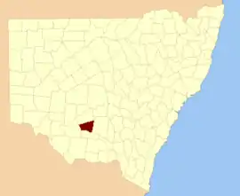 DowneyHay Shire Council34°11′54″S 145°09′04″E / 34.19833°S 145.15111°E / -34.19833; 145.15111 (Downey)
