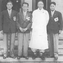 ![]() Sohn Kee-chung, Suh Yun-bok, Kim Ku and Nam Sung-yong at Gyeonggyojang in 1947 | |