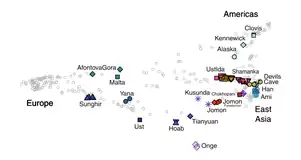 - ↑ Gakuhari, Takashi; Nakagome, Shigeki; Rasmussen, Simon; Allentoft, Morten E. (25 August 2020). "Ancient Jomon genome sequence analysis sheds light on migration patterns of early East Asian populations". Communications Biology. 3 (1): Fig.1 A, B. doi:10.1038/s42003-020-01162-2. hdl:20.500.12000/50006. ISSN 2399-3642.