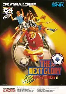 Super Sidekicks 3: The Next Glory[lower-alpha 1] is a 1995 soccer arcade video game developed and published by SNK. It is the third installment in the Super Sidekicks series, succeeding Super Sidekicks 2: The World Championship (1994). Featuring an arcade-style approach to soccer like its predecessors, the game allows players to choose any of the available game modes to compete with AI-controlled rivals or other human players with their preferred team. Though first launched for the MVS hardware, the title was ported for Neo Geo AES and Neo Geo CD, in addition of being re-released through compilations and download services for various consoles. It proved popular among players and garnered positive reception from critics, however most reviewers noted that it felt more an update than a true successor to Super Sidekicks 2. It was followed by The Ultimate 11: SNK Football Championship in 1996.