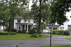 The main house was built about 1898 by George and Isabel Valle Austen on land that had been previously owned by Horatio Jones and the Wadsworth family. It was then the home of Winthrop and Margaret Ward Terry Chanler. It is a 2+1⁄2-story frame building with clapboard siding and a hipped roof with dormers. It is in a "U" shape and features a grand Tuscan colonnade. Also on the property are contributing gate posts, a stable, fountain, two tenant houses, and the Chapel of St. Felicitas. The chapel was built in 1913 and is a small stucco building with a slate roof and stained glass windows.[2] The structure was later moved to the neighboring home near Fall Brook. The main house (with ten acres) was sold in 2004 and operated as a bed and breakfast, wedding venue, spa and yoga studio until 2014. Currently Sweet Briar is a private residence.