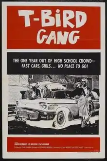 T-Bird Gang is a 1959 American film directed by Richard Harbinger in his first and final film. It was co-written by and starring John Brinkley and Tony Miller with Edwin Nelson; all of them had appeared in several of Roger Corman's films.