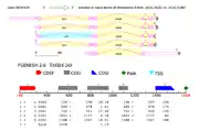 The TMEM249 promoter region annotated for predicted transcription factor binding sites.
