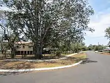 The school celebrated the 75th jubilee of its official opening on 2 April 1955, with approximately 1300 people in attendance. A photograph taken on the day shows the Ferguson teaching building with an open front verandah, balustrade with horizontal rails and paling fence. The visitors' book was signed under the Leopard tree (Caesalpinia ferrea) believed to have been planted c.1894 by then Head Teacher, Edward Doran, and "Johnny Tarampa, King of the Trampah tribe" who died c.1901.[33] Other mature trees grow on the site, such as Jacaranda (Jacaranda mimosifolia), Eucalyptus spp, and a large Fig Tree (Ficus sp) in the garden of the teacher's residence.[1]