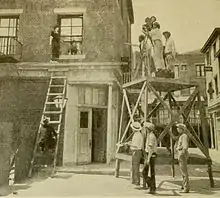 ![]() Still from the production with Sedgwick on the window ledge | |