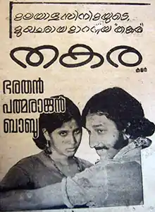 Thakara is a 1979 Indian Malayalam-language drama film directed by Bharathan and written by Padmarajan. It stars Prathap Pothan, Surekha, Nedumudi Venu and K. G. Menon in pivotal roles. The film was a breakthrough in the career of Bharathan and Venu. It was remade in Tamil as Aavarampoo (1992).[1]