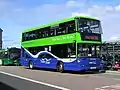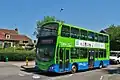 The Connector brand is used for Didcot focused services,[6] and covers routes between Didcot and Oxford, Abingdon, Henley-on-Thames, Wallingford, Wantage, Grove, Faringdon, East Hanney, Newbury, Harwell Campus, JR Hospital, Great Western Park and Milton Park.[7][8] The Connector brand also covers the Science Transit Shuttle, which operates between Oxford and Harwell Campus and between Wytham and the JR Hospital, under contract from the University of Oxford.[9][10] The Connector routes have a dedicated fleet in a livery of two-tone grey with a light green coachline, and "Connector" graphics promoting the route.