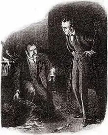 "The Adventure of Wisteria Lodge" was first published in the US in Collier's on 15 August 1908, and in the UK in The Strand Magazine in September–October 1908. In the Strand, the story was published in two parts: "The Singular Experience of Mr. John Scott Eccles" and "The Tiger of San Pedro".[1] The story was published with six illustrations by Frederic Dorr Steele in Collier's, and with ten illustrations by Arthur Twidle in the Strand.[2] It was included in the short story collection His Last Bow,[2] which was published in the UK and the US in October 1917.[3]