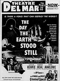 - ↑ Crowther, Bosley (September 19, 1951). "THE SCREEN IN REVIEW; Emissary From Planet Visits Mayfair Theatre in 'Day the Earth Stood Still'". The New York Times. Retrieved March 11, 2016.