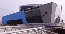 Billed as "the world's only submarium",[4] the exhibits contain thousands of sea creatures (including seven species of shark), 2,500,000 litres (550,000 imp gal) of water and 87 tonnes (86 long tons) of salt housed in a building designed by Terry Farrell and built as part of the UK National Lottery's Millennium Commission project.