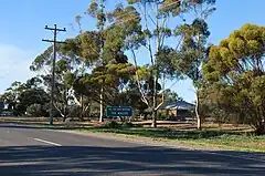 Production was initially planned to start in early 2014, but due to Winslet's pregnancy it was delayed to late 2014.[41][42] Pre-production finally began in September 2014, with the construction of fictional town Dungatar started on 16 September 2014[43] at Mount Rothwell, one hour out of Melbourne.[44][45][46] According to Maslin, after looking at many small towns around regional Victoria with Ham and Moorhouse, they decided to set the location of Dungatar "in the wheat-growing area of Victoria's Wimmera-Mallee".[47][48] Maslin added, "Rosalie is definite about it being in a wheatbelt but on a hill. We drove around Victoria, NSW and into South Australia for three years looking but never found all the elements. Then one day the location department at Film Victoria rang up and suggested the back of the You Yangs near Geelong, where Heath Ledger had filmed Ned Kelly. It had a granite outcrop and a landscape of dead trees. Our DOP Don McAlpine took one look and said ‘We have to shoot here’."[49]