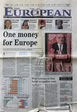 The European, billed as "Europe's first national newspaper", was a British weekly newspaper founded by Robert Maxwell.[1] It was published from 11 May 1990 until December 1998.