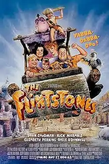 The Flintstones (also known as The Flintstones Movie or The Flintstones: The Live-Action Movie in the working title) is a 1994 American family comedy film directed by Brian Levant and written by Tom S. Parker, Jim Jennewein, and Steven E. de Souza based on the 1960–1966 animated television series of the same name. The film stars John Goodman as Fred Flintstone, Rick Moranis as Barney Rubble, Elizabeth Perkins as Wilma Flintstone, and Rosie O'Donnell as Betty Rubble, along with Kyle MacLachlan as Cliff Vandercave, a villainous executive-vice president of Fred's company, Halle Berry as Sharon Stone, his seductive secretary, and Elizabeth Taylor (in her final theatrical film appearance), as Pearl Slaghoople, Wilma's mother. The B-52's performed their version of the cartoon's theme song, playing themselves as the BC-52's.