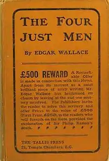 The Four Just Men is a detective thriller published in 1905 by the British writer Edgar Wallace. The eponymous "Just Men" appear in several sequels.