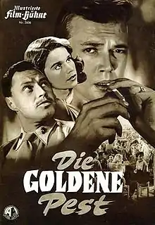 The Golden Plague (German: Die goldene Pest) is a 1954 West German drama film directed by John Brahm and starring Ivan Desny, Karlheinz Böhm, and Gertrud Kückelmann.[1] The film's sets were designed by the art director Alfred Bütow. Location shooting took place in Dotzheim and Kaiserslautern.