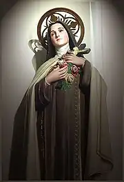 Görres highlights Thérèse's complete obedience in Carmel, particularly in the form of "complete and pure submission to the authority of God as represented by her appointed superiors."[16] Görres claims that the saint practiced love of neighbor "for almost her entire life...solely out of obedience"[17] through intentional acts such as sitting beside difficult sisters during the recreation hour.[18] After exploring Thérèse's love for Scripture, Görres briefly examines Thérèse's religious titles of the Child Jesus and the Holy Face, stating that they "imply a consecration and an imitation," respectively.[19]