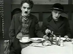 This plot was abandoned almost immediately, before Chaplin's character was introduced, the documentary states, and Chaplin began again, with a story, still set in a cafe, about a man who has never been in a restaurant before displaying terrible table manners before meeting a lovely girl (Purviance) and shaping up. Initially, Henry Bergman played the bully-ish head waiter, but Chaplin eventually replaced him with Eric Campbell.