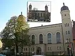 The New Synagogue in Ostrów Wielkopolski [ˈɔstruf vjɛlkɔˈpɔlski], Poland, is located in the city's center on 21 Raszkowska Street, which was the northern edge of the former Jewish district. Currently, this is the only preserved metropolitan synagogue. It is built in the once very popular Moorish Revival style. It is the most precious monument of religious architecture in Ostrów Wielkopolski. Long neglected, the synagogue has been fully restored in 2010. See the municipal website for updates: