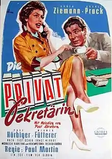 The Private Secretary (German: Die Privatsekretärin) is a 1953 West German comedy film directed by Paul Martin and starring Sonja Ziemann, Rudolf Prack and Paul Hörbiger.[1] It was a remake of the 1931 German film The Private Secretary.[2] The director Martin had worked on the earlier film as editor. It was shot at the Wandsbek Studios and on location in Hamburg. The film's sets were designed by Hermann Warm and Alfons Windau.