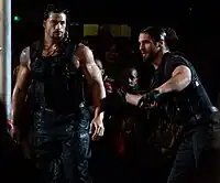 On the July 31 episode of Raw, Rollins was confronted by Raw Tag Team Champions Cesaro and Sheamus, and later won a match against Sheamus after which the duo attacked Rollins before Ambrose came down to make the save, though backstage Ambrose told Rollins that he would not help him if Rollins got outnumbered again.[127] The following week on Raw, after Rollins lost a rematch against Sheamus and was once again attacked after the match, Ambrose did not help him. Later that night, Ambrose defeated Cesaro, only to be subsequently attacked by the duo before being saved by Rollins.[128][129] On the August 14 episode of Raw, an argument in the ring culminated in Ambrose and Rollins brawling with each other only to fight off Cesaro and Sheamus and performing a fist bump to a loud ovation.[130] Rollins and Ambrose defeated the champions at SummerSlam, winning the titles.[20][131]