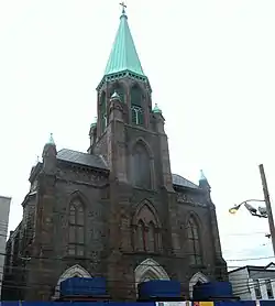 The Village is a neighborhood in the western section of Historic Downtown in Jersey City.[1] It is bordered by Hamilton Park and Harsimus Cove to the east and the Turnpike Extension to the west, on the other side of which Jones Park and Mary Benson Park are located. Newark Avenue is the major street across the Village from Grove Street at the east to Bergen Hill at the west. The neighborhood for many years was considered the city's "Little Italy" neighborhood. Brunswick Street, between 1st and 10th Streets was once full of merchants and nicknamed "Bushel Avenue".[2][3][4] St. Anthony of Padua Roman Catholic Church at 457 Monmouth St. received its historic designation on March 22, 2004. An annual feast organised by Holy Rosary Church on 6th and Brunswick Streets has taken place since the turn of 20th century.[5]