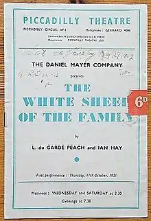 The White Sheep of the Family is a 1951 British comedy play by Lawrence du Garde Peach and Ian Hay. A criminal family are distressed when their son wants to go straight.