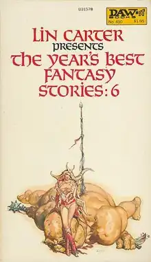 The Year's Best Fantasy Stories: 6 is an anthology of fantasy stories, edited by American writer Lin Carter. It was first published in paperback by DAW Books in November 1980. Despite the anthology's title, it gathers together pieces originally published during a four-year period, 1977 to 1980, with the preponderance of them from 1979.[1]