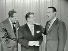 The idea for This Is Your Life arose while Edwards was working on game show Truth or Consequences. He had been asked by the United States Army to "do something" for paraplegic soldiers at Birmingham General Army Hospital, a California Army rehabilitation hospital in Van Nuys, Los Angeles (a site later converted into a high school). Edwards chose a "particularly despondent young soldier and hit on the idea of presenting his life on the air, in order to integrate the wreckage of the present with his happier past and the promise of a hopeful future."[1] Edwards received such positive public feedback from the "capsule narrative" of the soldier he gave on Truth or Consequences that he developed This Is Your Life as a new radio show.[2] In the show, Edwards surprised each guest by narrating a biography of the subject. The show "alternated in presenting the life stories of entertainment personalities and 'ordinary' people who had contributed in some way to their communities."[2] The host, consulting his "red book", narrated while presenting the subject with family members, friends, and others who had affected their life.