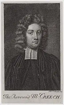 Thomas Creech (1659 – found dead 19 July 1700) was an English translator of classical works, and headmaster of Sherborne School. Creech translated Lucretius into verse in 1682, for which he received a Fellowship at Oxford. He also produced English versions of Manilius, Horace, Theocritus, and other classics.[1]