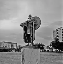 In the late 1930s, the city of Reykjavík paid for another casting of the statue to be made for the 1939 New York World's Fair.[12] The statue stood next to one of two entrances to Iceland's exhibit at the Hall of Nations for the duration of the fair (with a casting of the statue of Leif Erikson by Alexander Stirling Calder at the other entrance).[13] After the fair, the statue of Thorfinn went to Reykjavík. In June 1947, it was erected on a small islet in a pond just south of Tjörnin[14] (today this pond is called Þorfinnstjörn). In 1962, the statue was removed from the islet.[15] The casting now resides in the Laugardalur district of Reykjavík, near a retirement home and movie theater.[6]