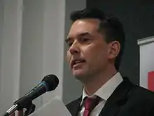 Tim Louis MP (born 1969) is a Canadian Liberal politician and musician first elected as a Member of Parliament in the House of Commons of Canada to represent the federal riding Kitchener—Conestoga during the 2019 Canadian federal election, defeating incumbent Harold Albrecht.[3]