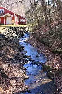 The grounds of the Danville State Hospital is in the watershed of Toby Run.[4] In the late 1800s, the gas works of the State Lunatic Asylum were at the mouth of the stream.[7] In 1913, the stream was proposed for use as a secondary water supply for the Danville State Hospital.[8] A pumping station was also located near the stream.[9]