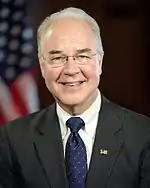 Thomas Edmunds Price (born October 8, 1954) is an American physician and Republican Party politician who served as the U.S. representative for Georgia's 6th congressional district, encompassing the northern suburbs of Atlanta, from 2005 to 2017.[1] While in Congress, Price chaired the House Committee on the Budget,[2] Republican Study Committee and Republican Policy Committee.[3][4] He was appointed Secretary of Health and Human Services by President Donald Trump and served in that role from February to September 2017.