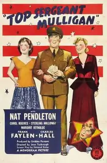 Top Sergeant Mulligan is a 1941 American comedy film directed by Jean Yarbrough and written by Edmond Kelso. The film stars Nat Pendleton, Carol Hughes, Sterling Holloway, Marjorie Reynolds, Tom Neal, Frank Faylen and Charlie Hall. The film was released on October 17, 1941, by Monogram Pictures.[1][2][3]